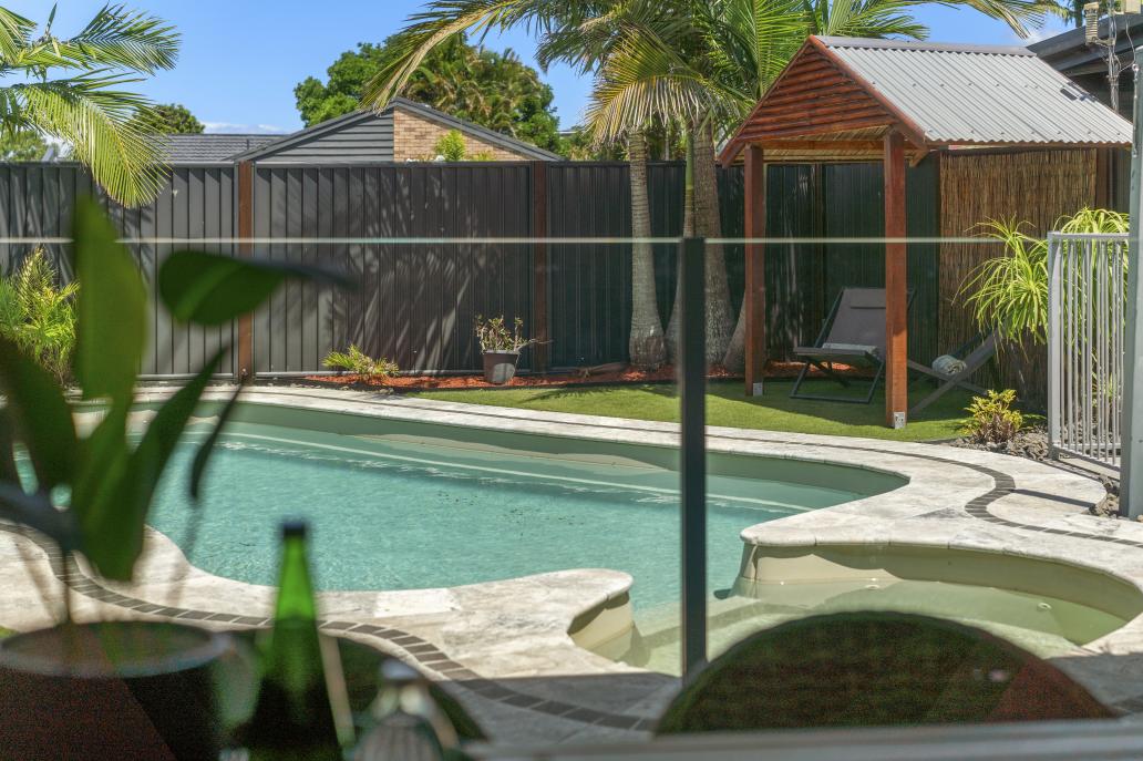 Positioned on a rare flat 712m² block, there’s space for life to unfold in every direction — gardens, pets, trampolines and long afternoons by the pool. Zoned for PBC and walking distance to Elanora Primary, this pocket of Elanora is tightly held for a reason.