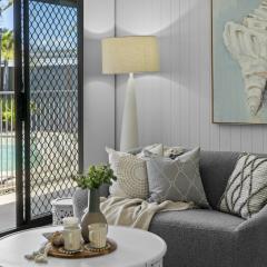 Deck Outdoor entertainment area Undercover outdoor area Fenced in-Ground Pool Close to beach Level Block Close to school Secure Parking Solar Hot Water Air conditioning Ensuite Outside Spa